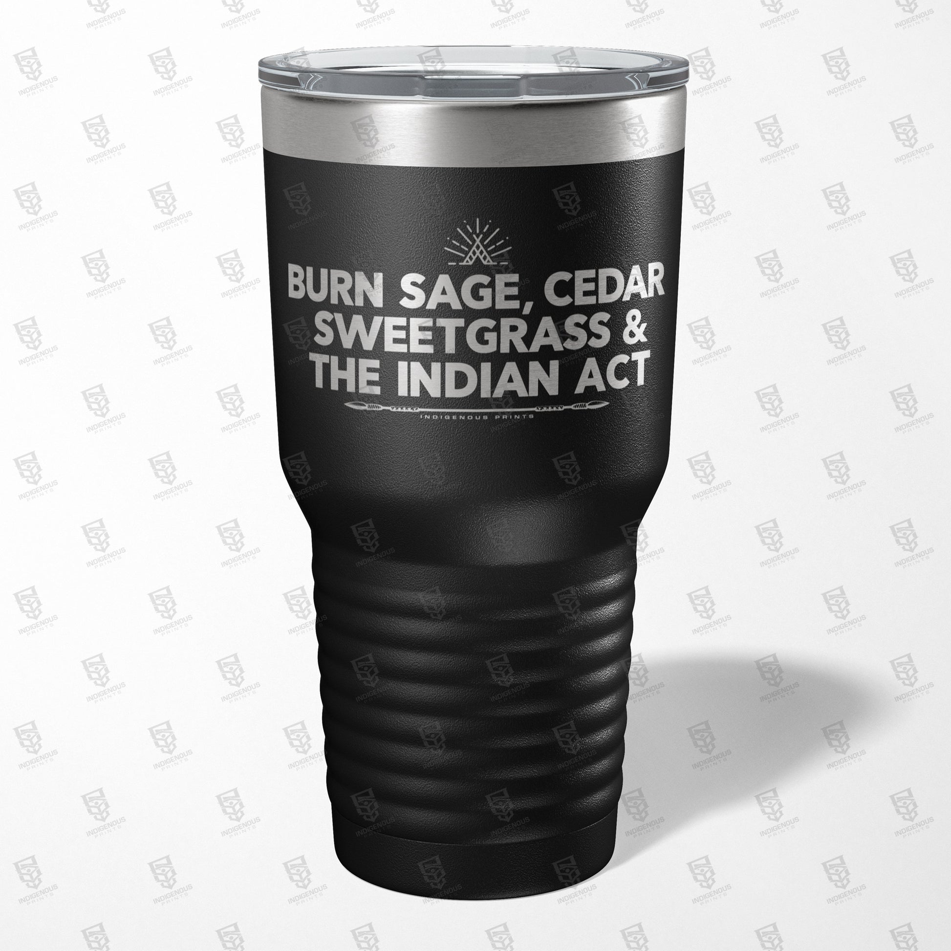 Let the world know how you feel with our 30 oz "Burn Sage, Cedar, Sweetgrass & The Indian Act" Tumbler Mug.